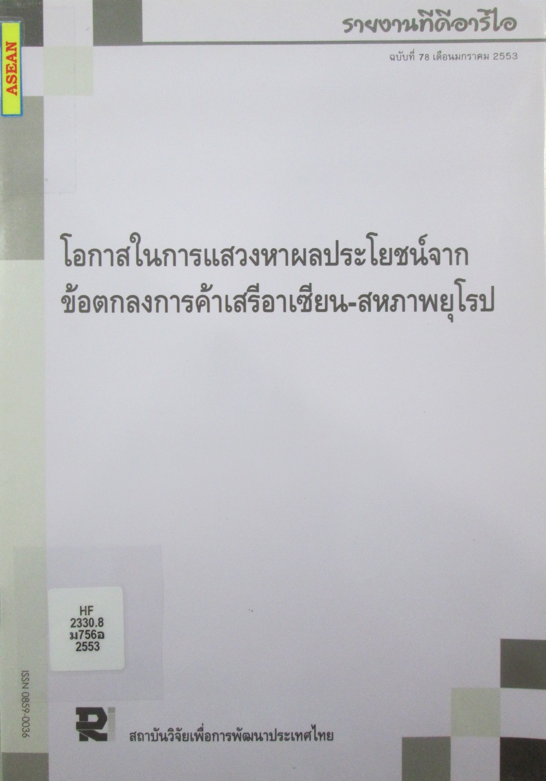 | 1. | Thai ASEAN Books | HF2330.8 ม756อ 2553 Barcode: 201201018 | On Shelf Request | ||||||
